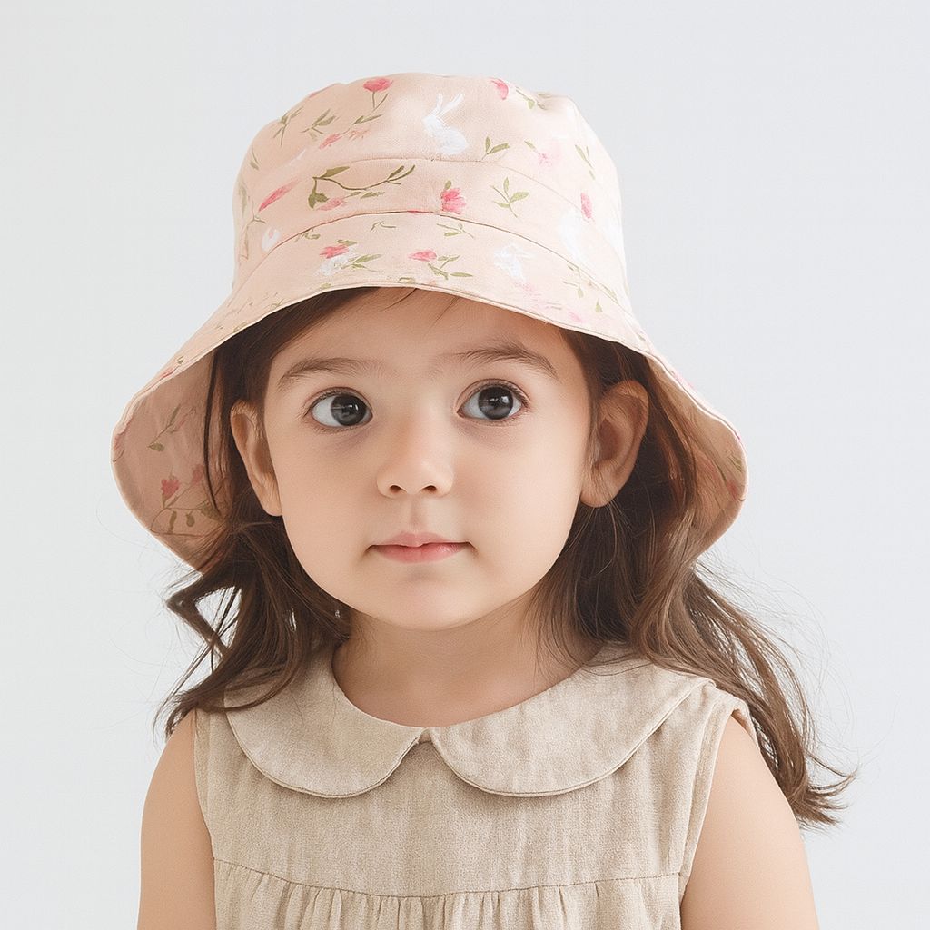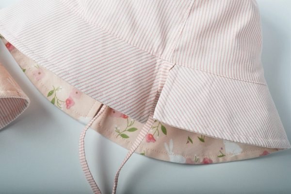 Meet the Bunny Blossom Reversible Hat, two adorable looks in one! One side features a sweet garden print with soft bunnies and flowers, while the other side shows off classic pink stripes for a timeless touch. Made from lightweight, breathable cotton, it’s perfect for sunny strolls, picnics, and playtime adventures.
