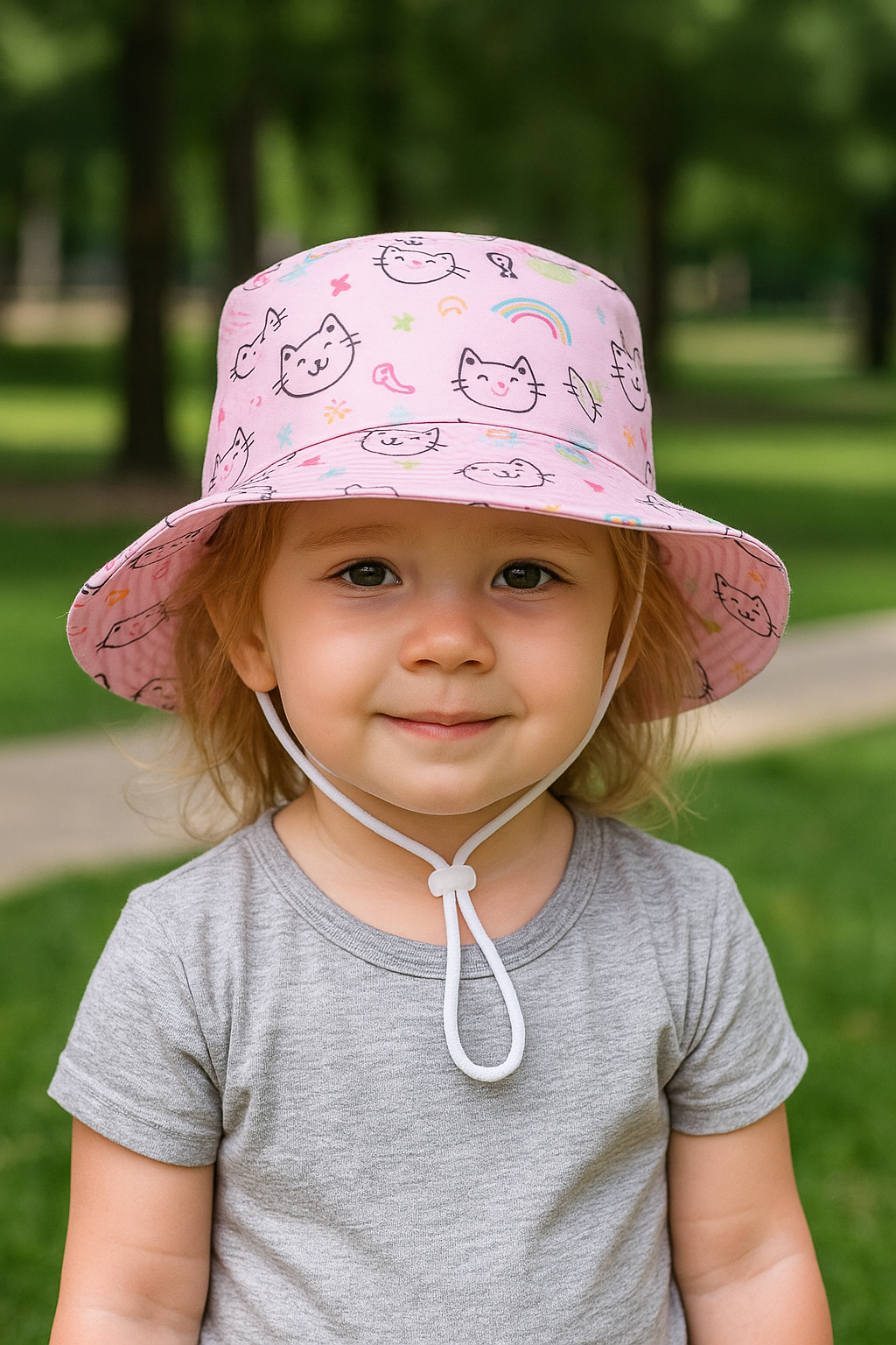 Soft pastel tones and charming cat illustrations make this bucket hat a beautiful blend of cute and stylish. Breathable and protective, it’s the perfect accessory for sunny days and playful outdoor adventures. Designed with a mix of cotton and polyester, it’s comfortable enough for all-day wear, while the wide brim helps protect your child’s face from the sun.
