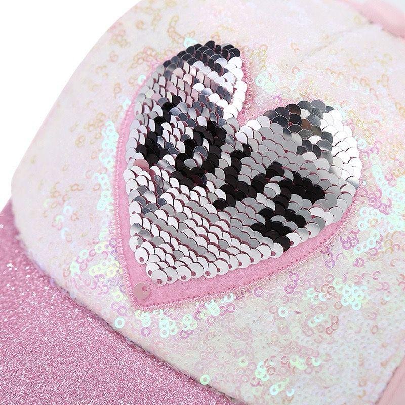 Let your little one shine with this adorable sequin LOVE cap, designed to bring sparkle, style, and comfort together. Featuring a soft pastel base with shimmering sequins and a playful heart design, this cap is perfect for girls who love fun fashion. The glittery visor adds an extra touch of magic, making it a standout accessory for any outfit.