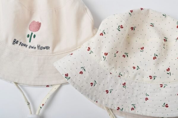 Add charm and versatility to your child’s outfit with this adorable Tulip Reversible Bucket Hat. Designed with a soft cotton fabric, this hat features a beautiful tulip embroidery on one side and a delicate floral pattern on the other, giving two stylish looks in one hat.